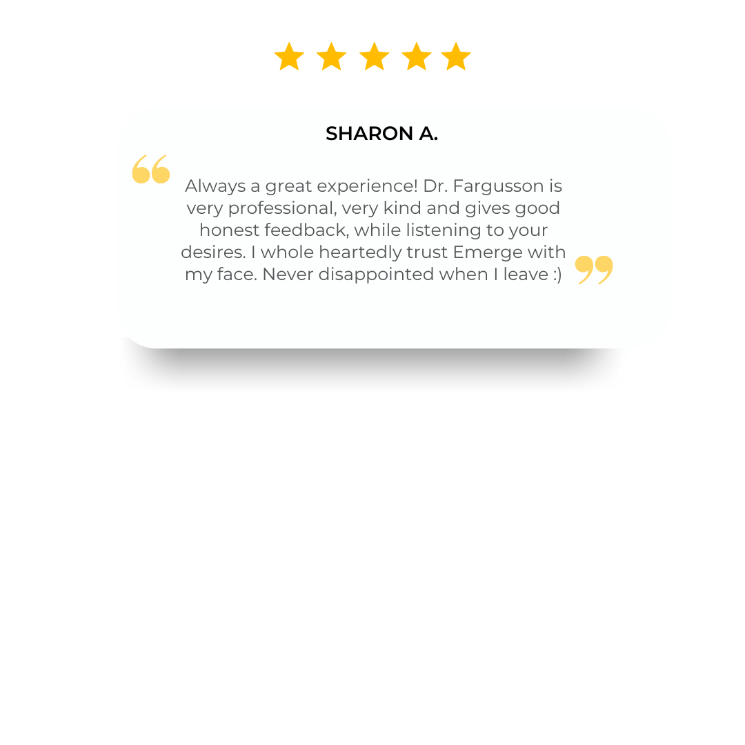 Emerge Medical Aesthetics provides solutions to address symptoms of aging. We develop a relationship with our patients. Above all, listening to and analyzing their concerns. In short, we partner with you to help you realize the best version of yourself!